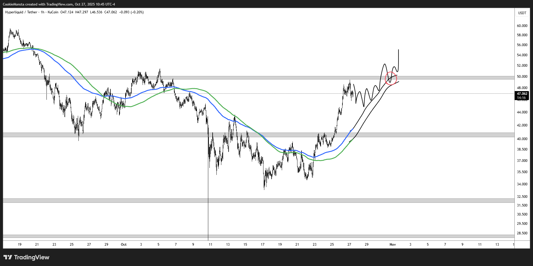 Any strong breakout of $49 and we should see continuation into price discovery.