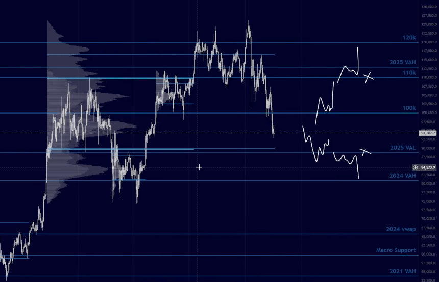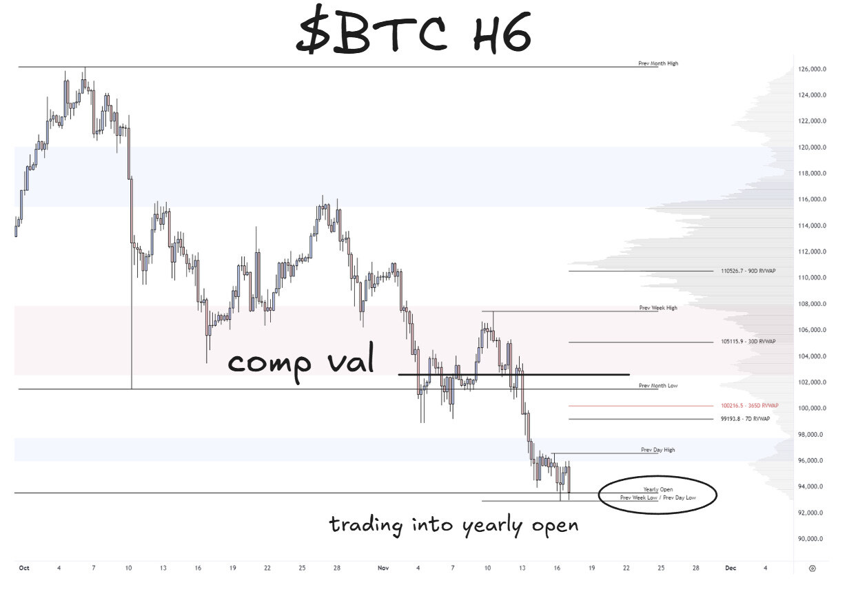 If BTC bounces from here, I will be observing how flow develops around the previous composite value area low in the 100-102 area (which has additional confluence of the 7D RVWAP and previous month low).