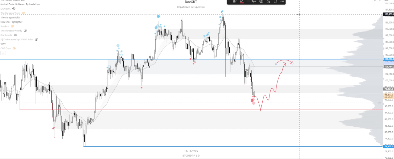 I originally called 94k as one of the areas I wanted to look for the bottom, but I think we're going to that 89k level for the next swing long instead.