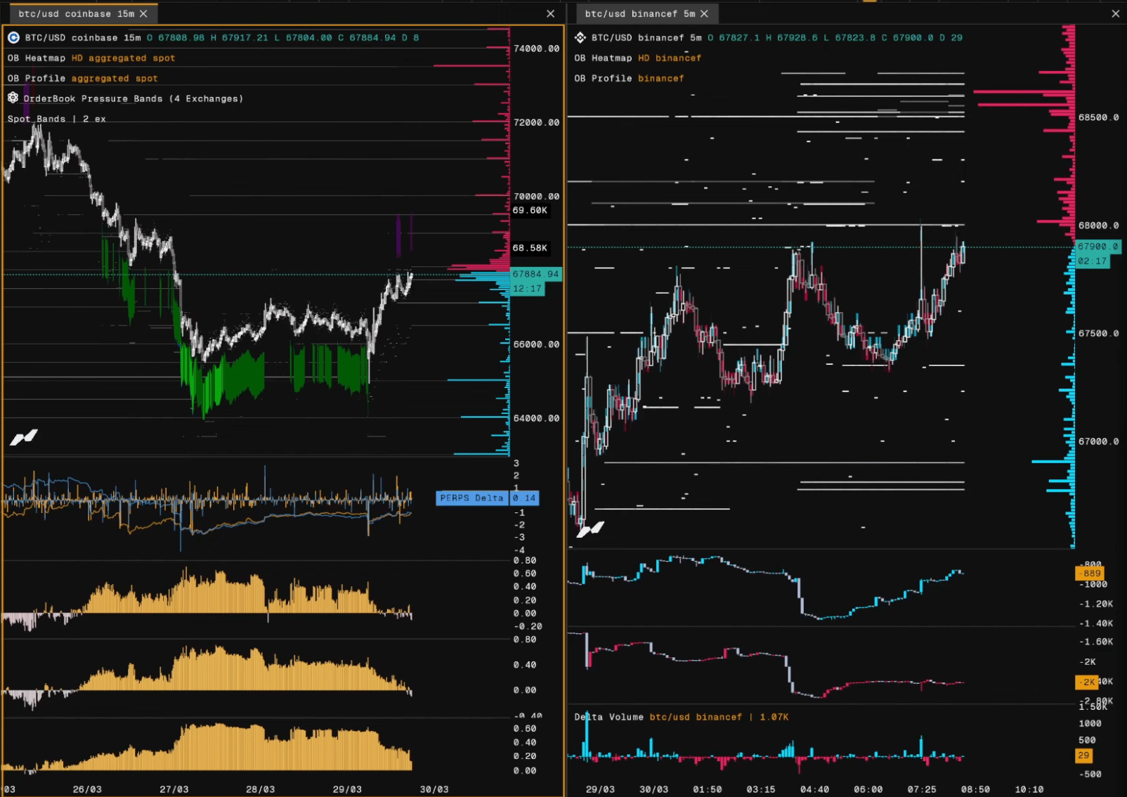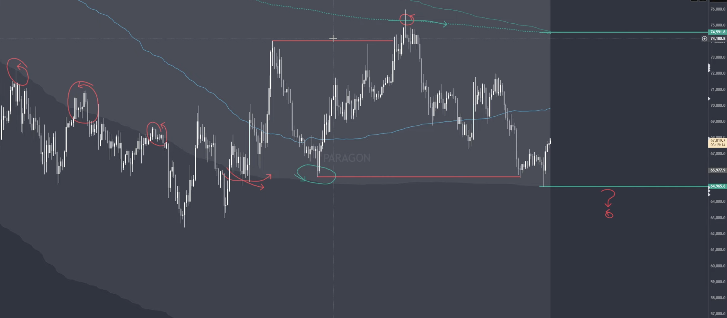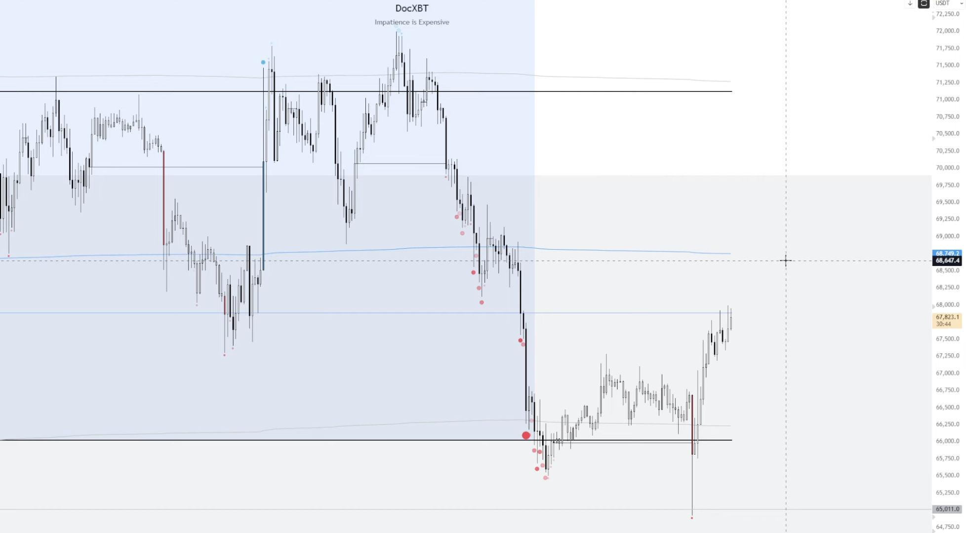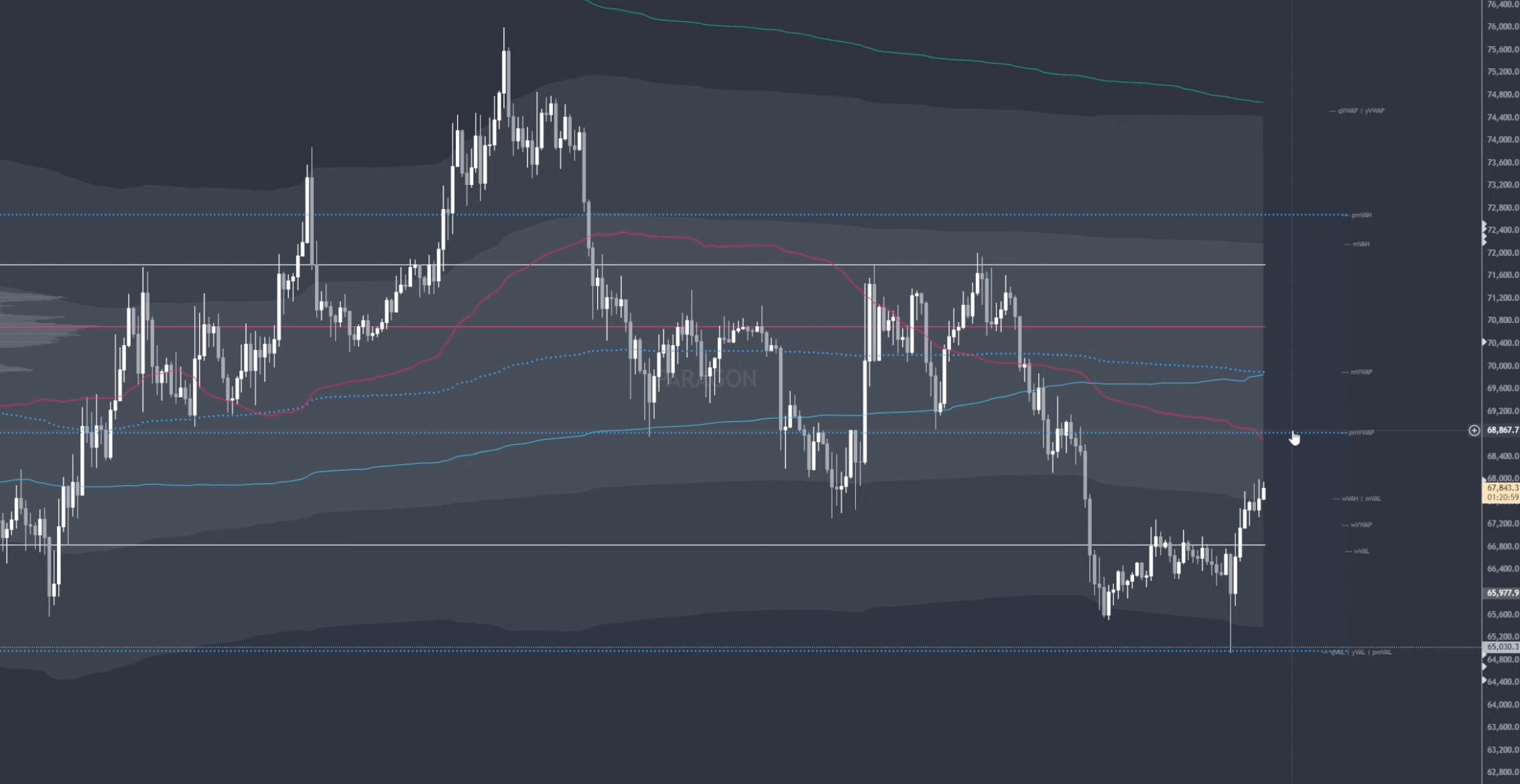 Mid 68k to 69k is the next major resistance, that's your previous month's VWAP, previous week's VWAP, and there's an ask wall on Binance around that level.