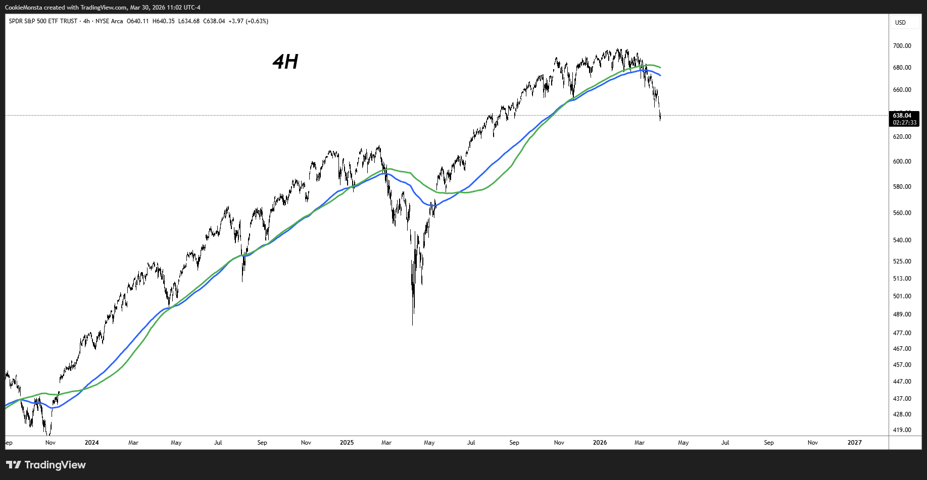 In previous editions, I discussed the breakdown of 4H 200 MAs on the S&P, which would likely allow for a deeper pullback into our D 200 MAs.