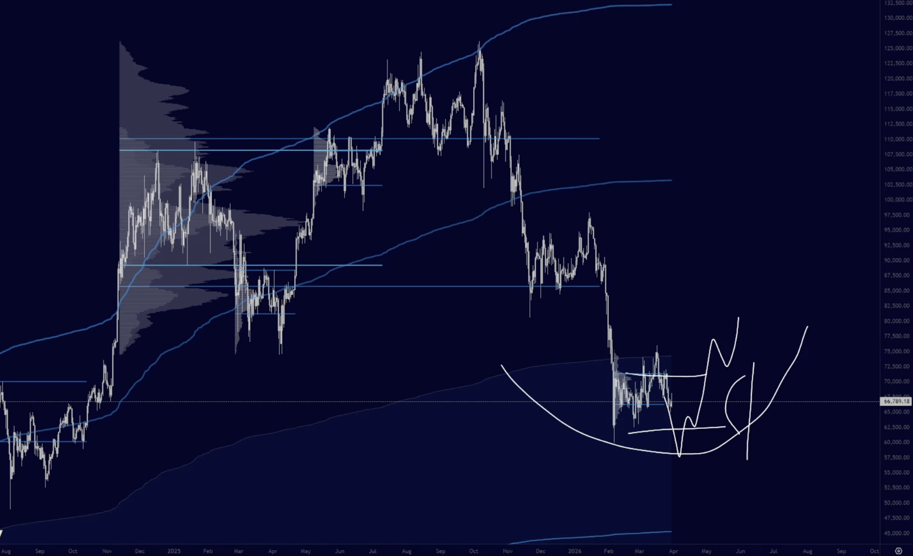 My short from the quarterly VWAP was closed on Friday, partial profits around 68k, full closure around 65k.