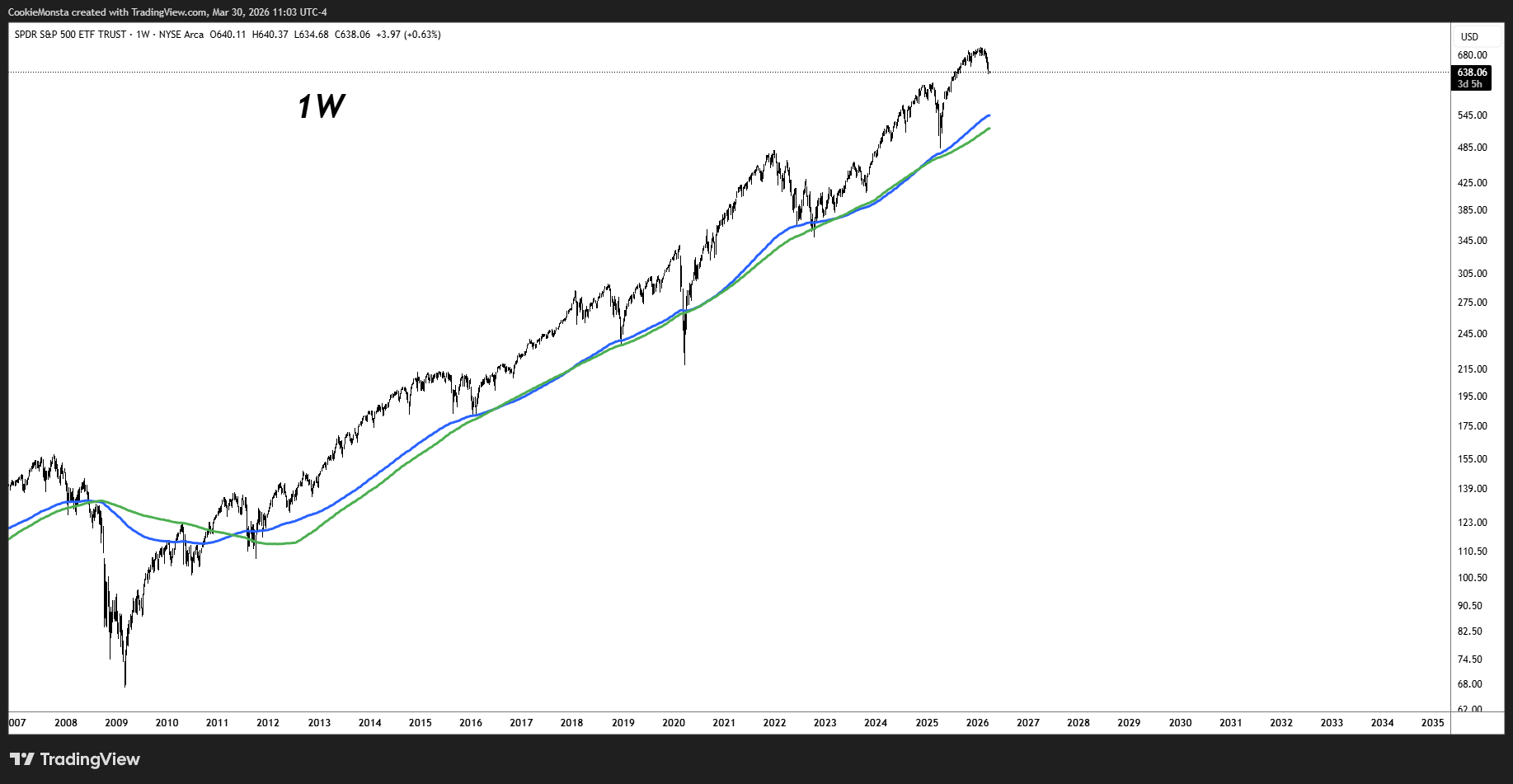 So in similar fashion, the loss of the D 200 MAs allows for a pullback towards the W 200 MAs, a trend that has, for the most part, represented generational bottoms throughout the past ~15 years.