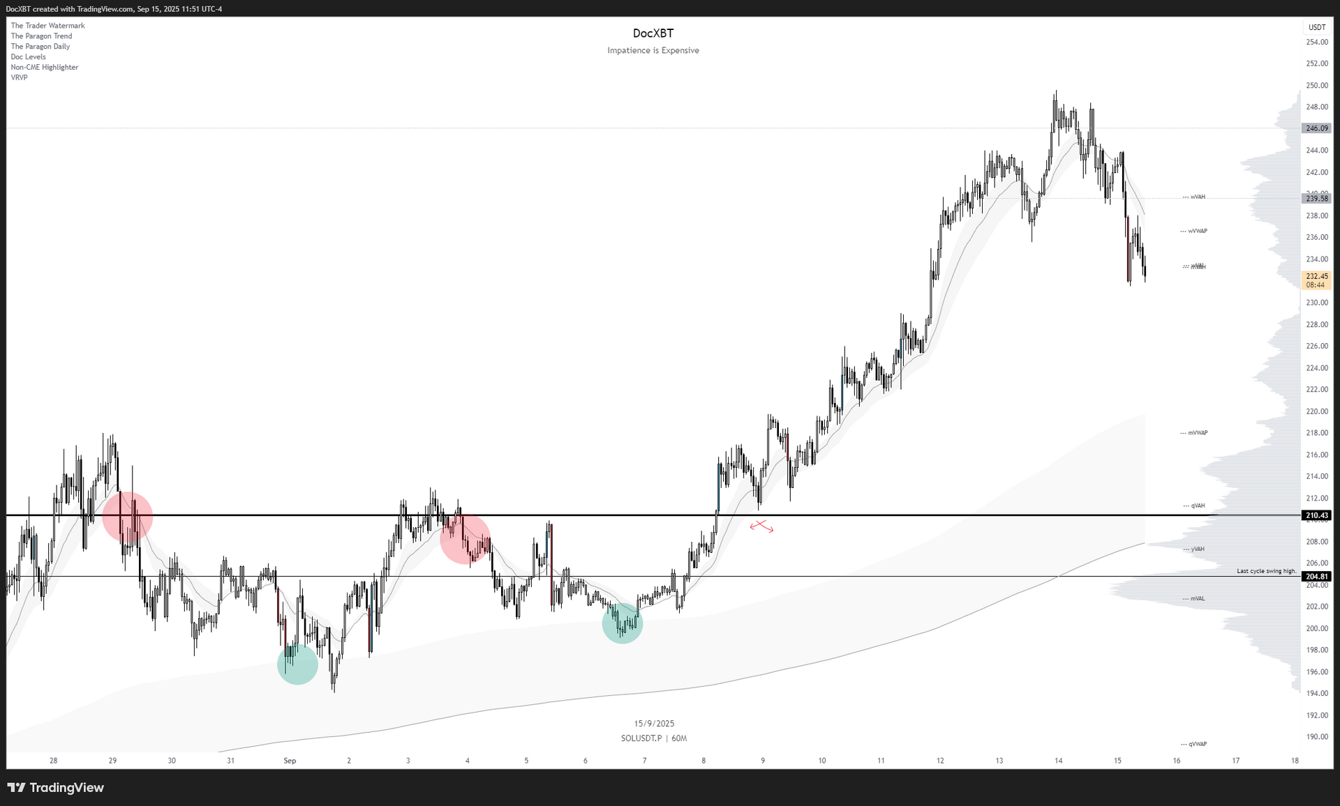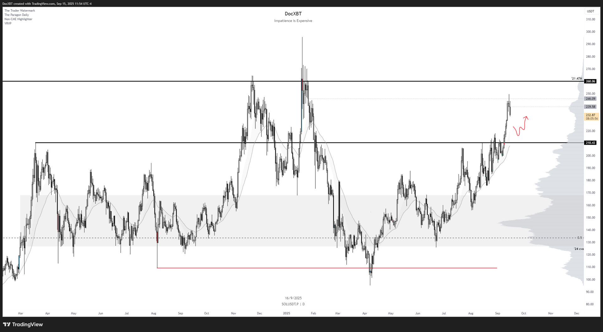 If the daily trend comes into play again around 220, it gives bulls a prime setup for HTF continuation.