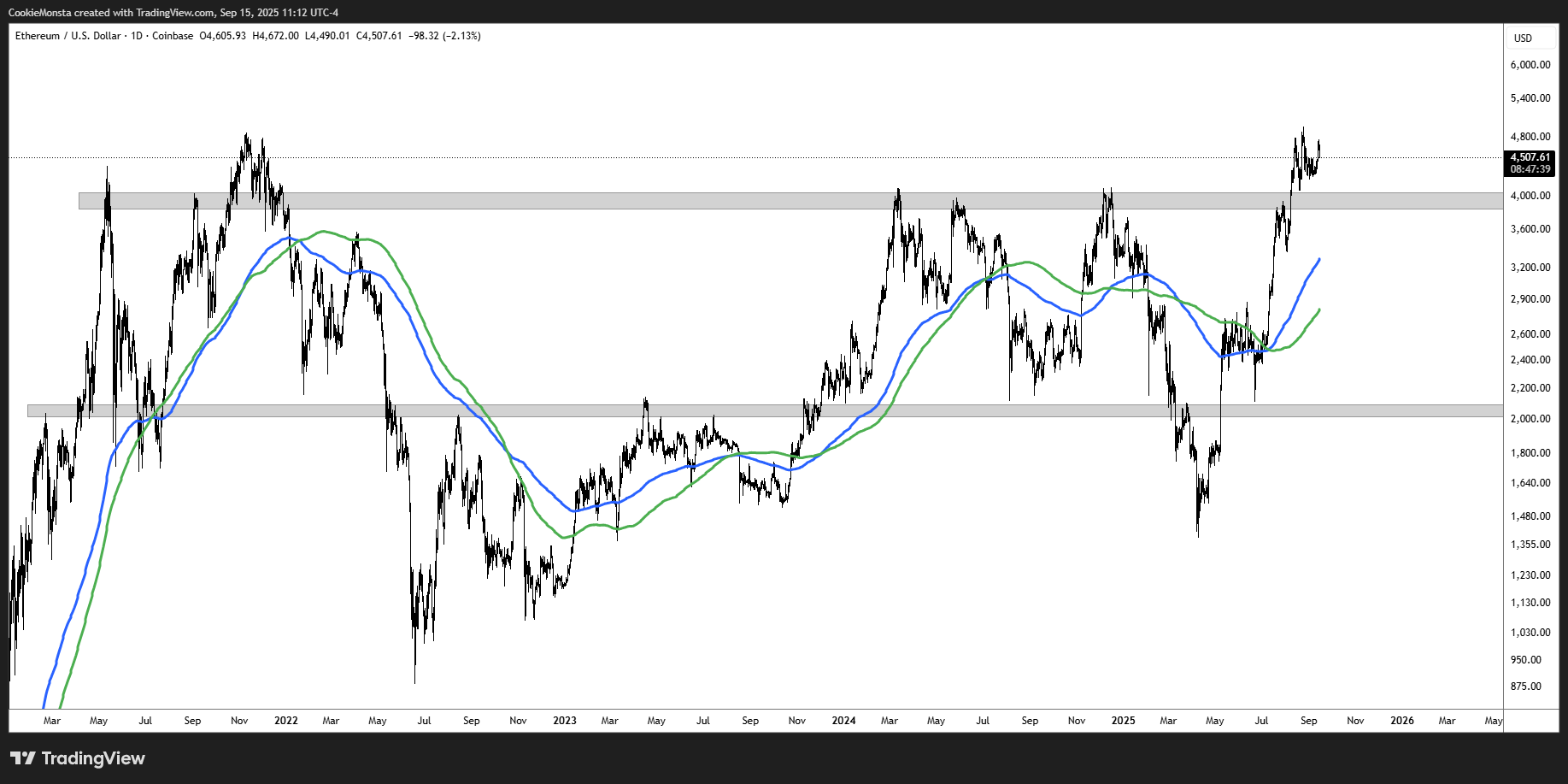 I'm looking for another higher low on ETH, before expanding away from the 4-year range