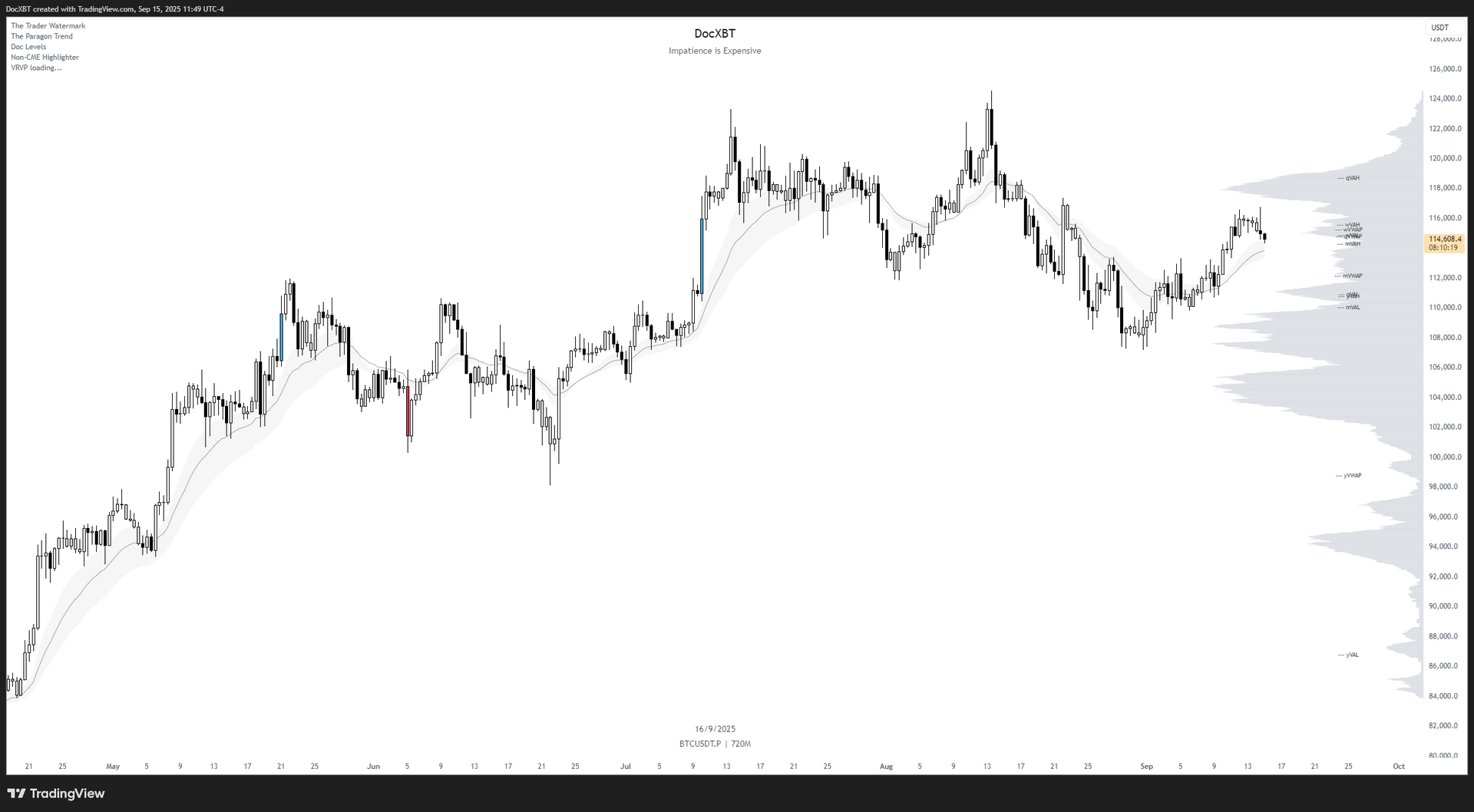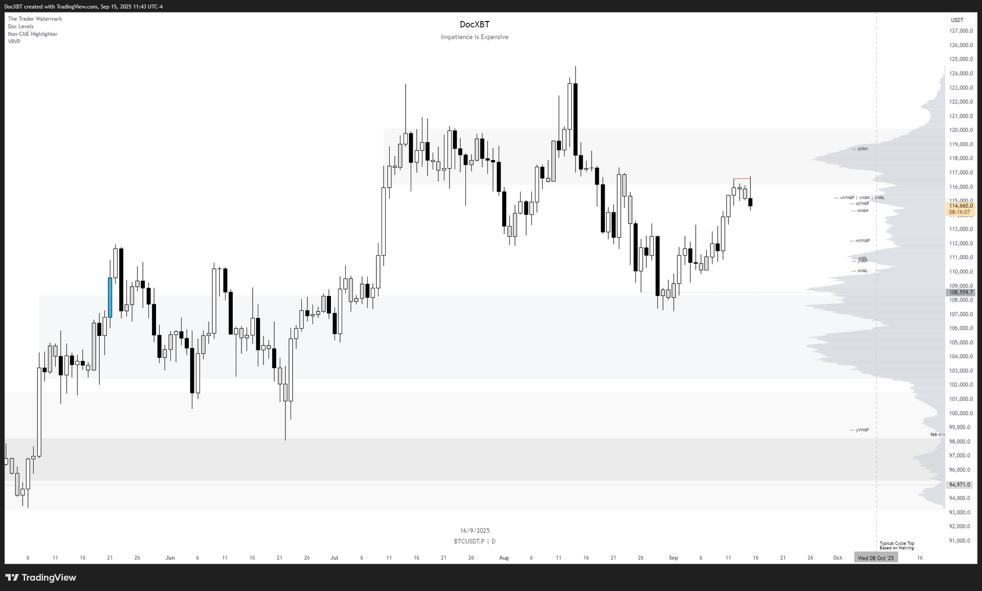 Right now, we're wedged between 110K support and 120K resistance with Q4 seasonality about to kick in.