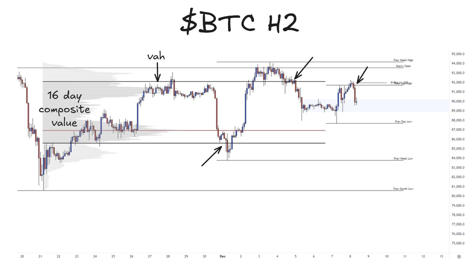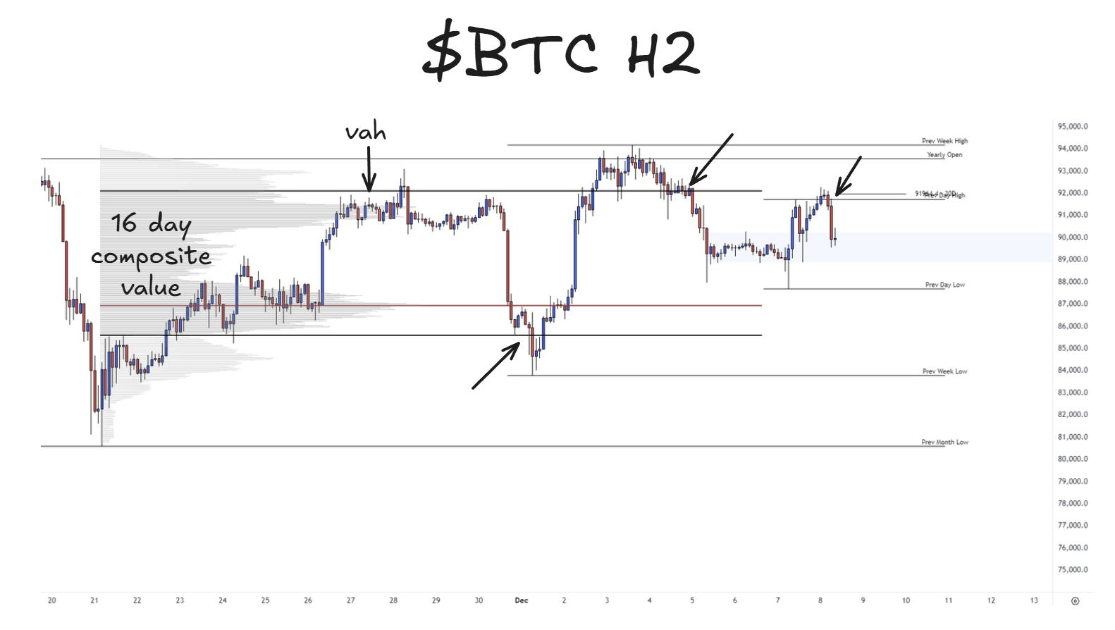 On LTF, I'm looking for reactions when BTC trades outside of value.