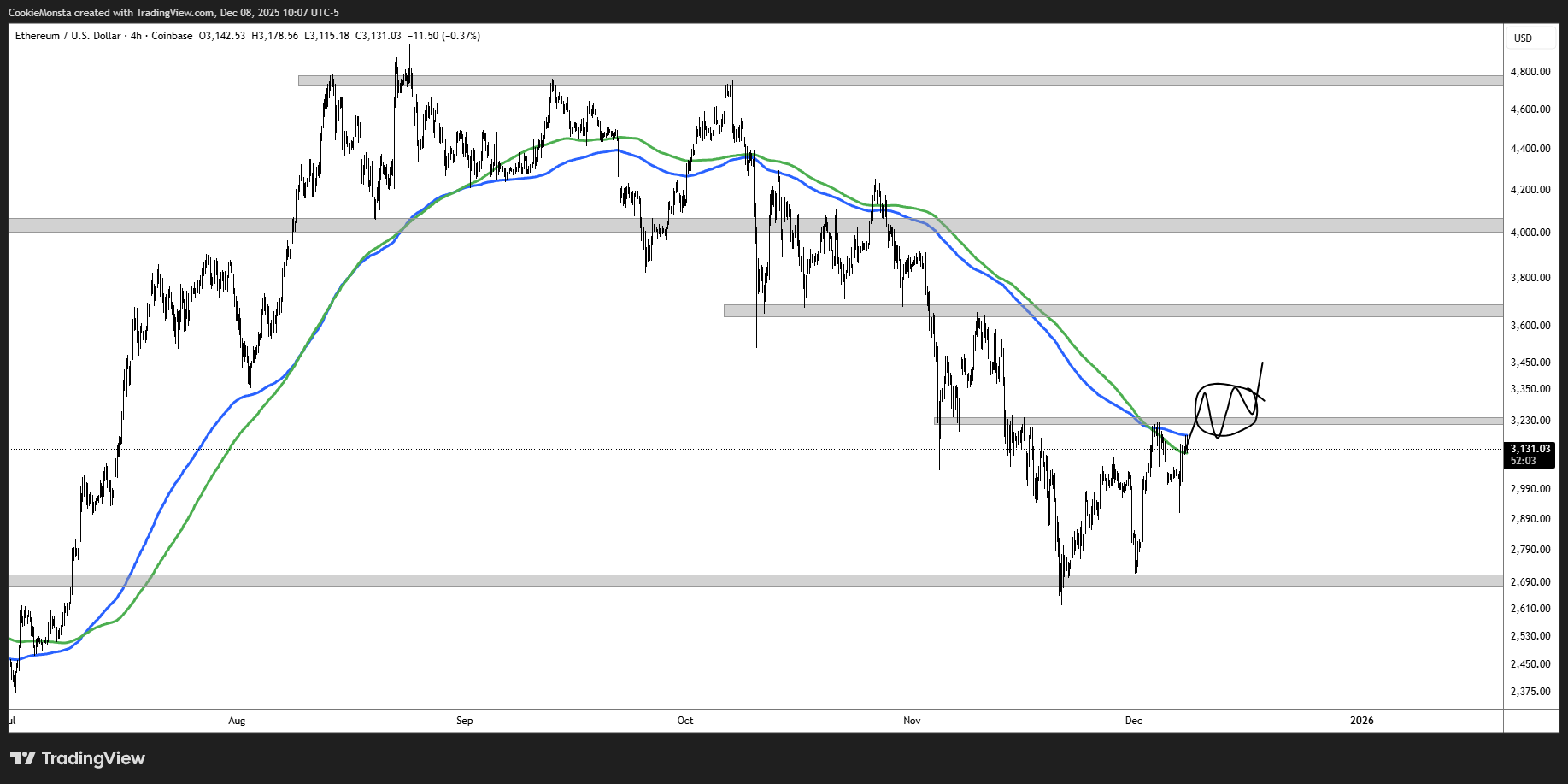 But if ETH reclaims the trend plus local resistance around $3250, there's an increased likelihood for a larger rally to follow.