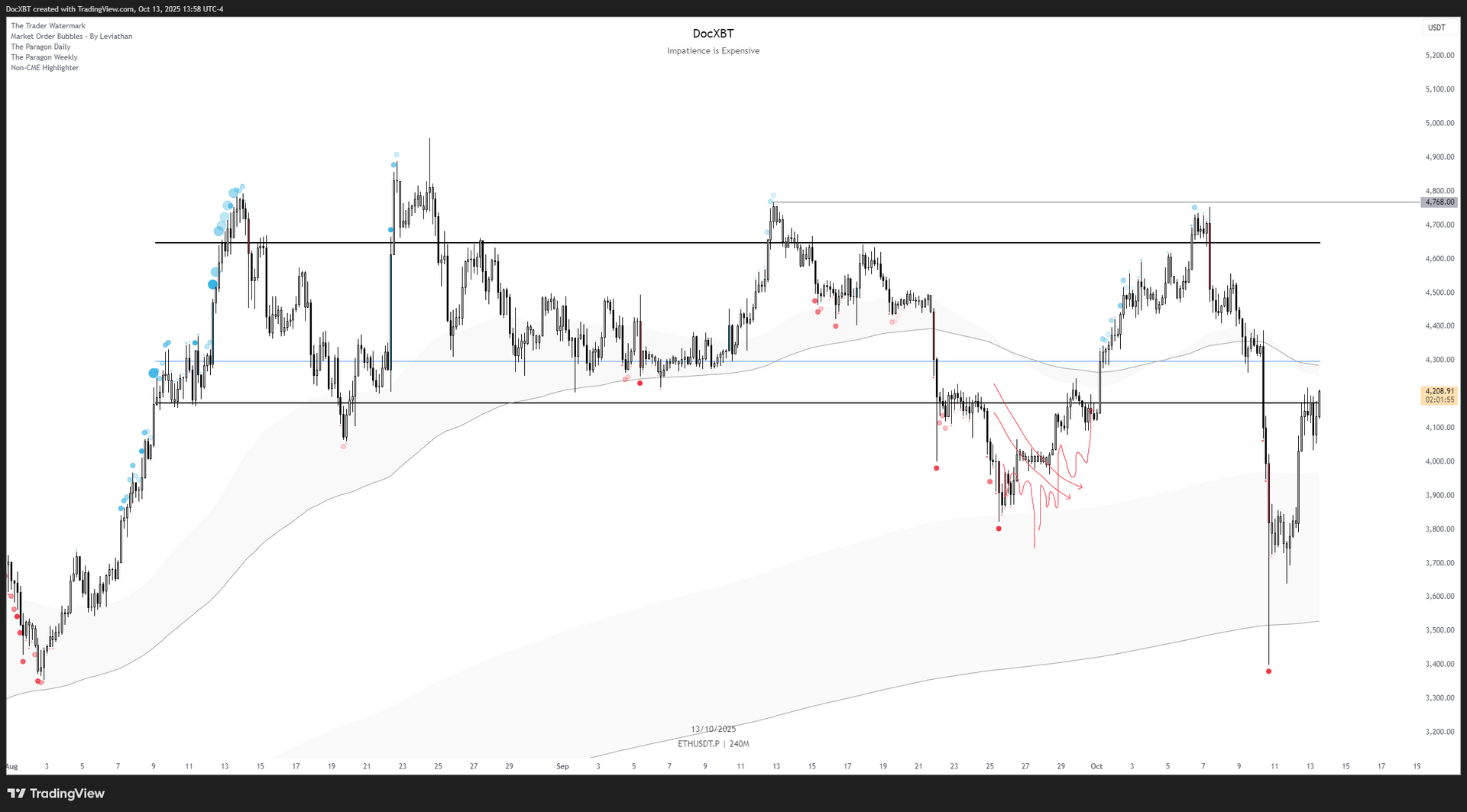 I'm looking to stack more ETH on any dips in the 3900-3400 region, especially if we get confluence from BTC (i.e. BTC showing relative strength against equities, running lows, holding value).