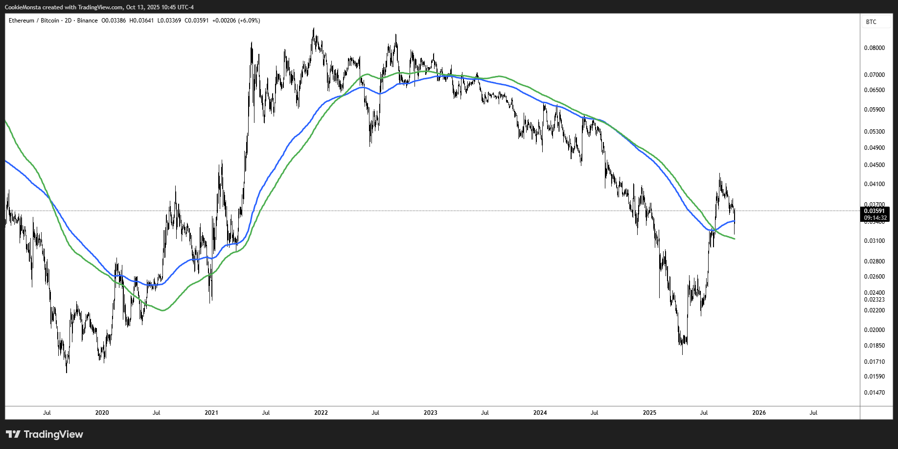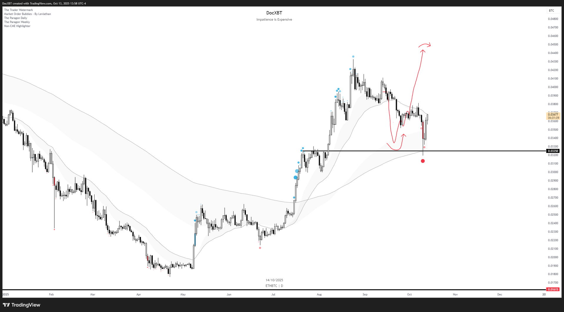 The incredibly high timeframe D2 200 MA trend on ETHBTC that we've been watching for several editions got tested perfectly during Friday's chaos and held beautifully with a strong reaction.