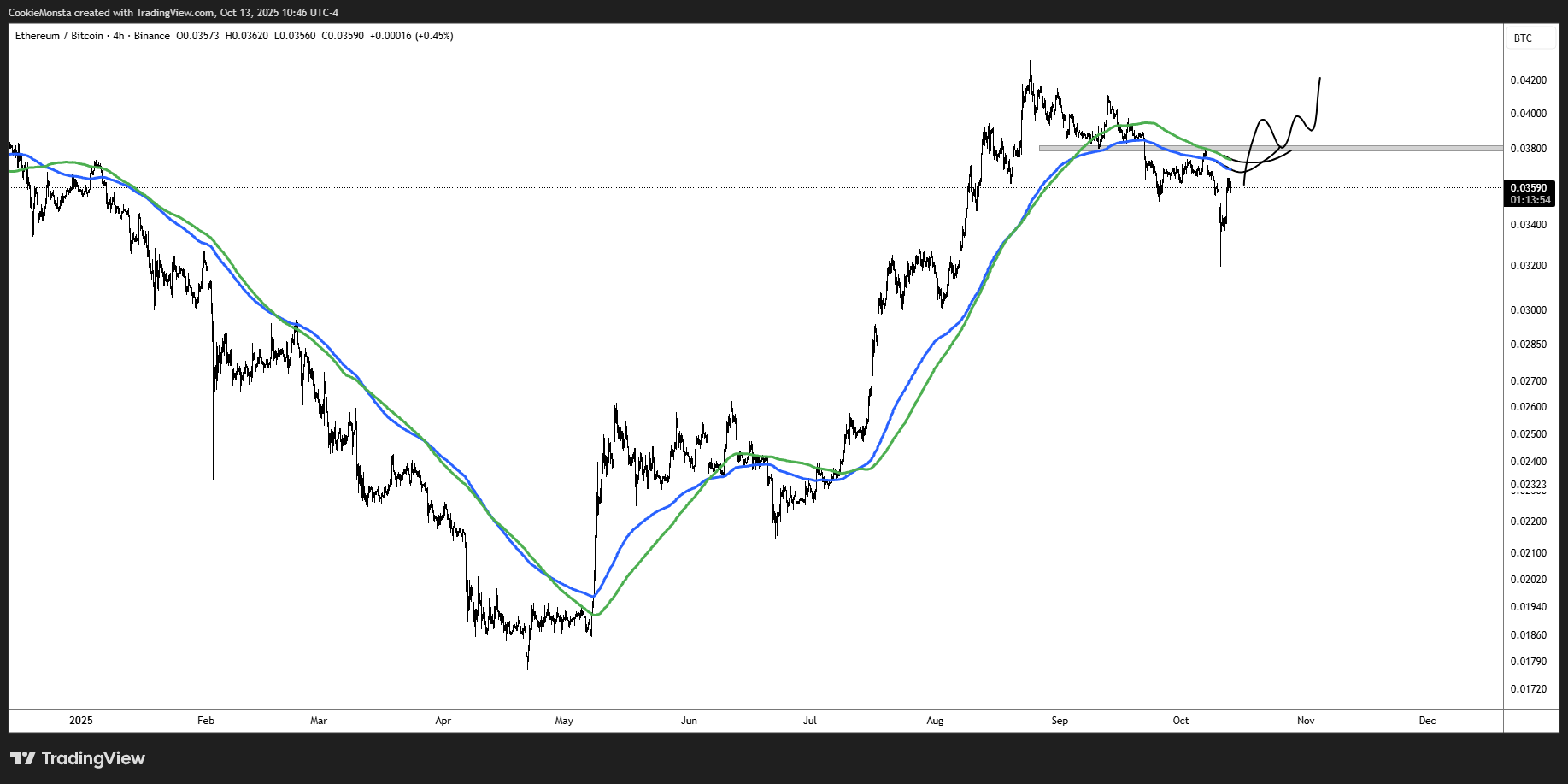 ETHBTC is the best proxy for the altcoin market, so strength would confirm the thesis that this was the flush we needed before legging higher.