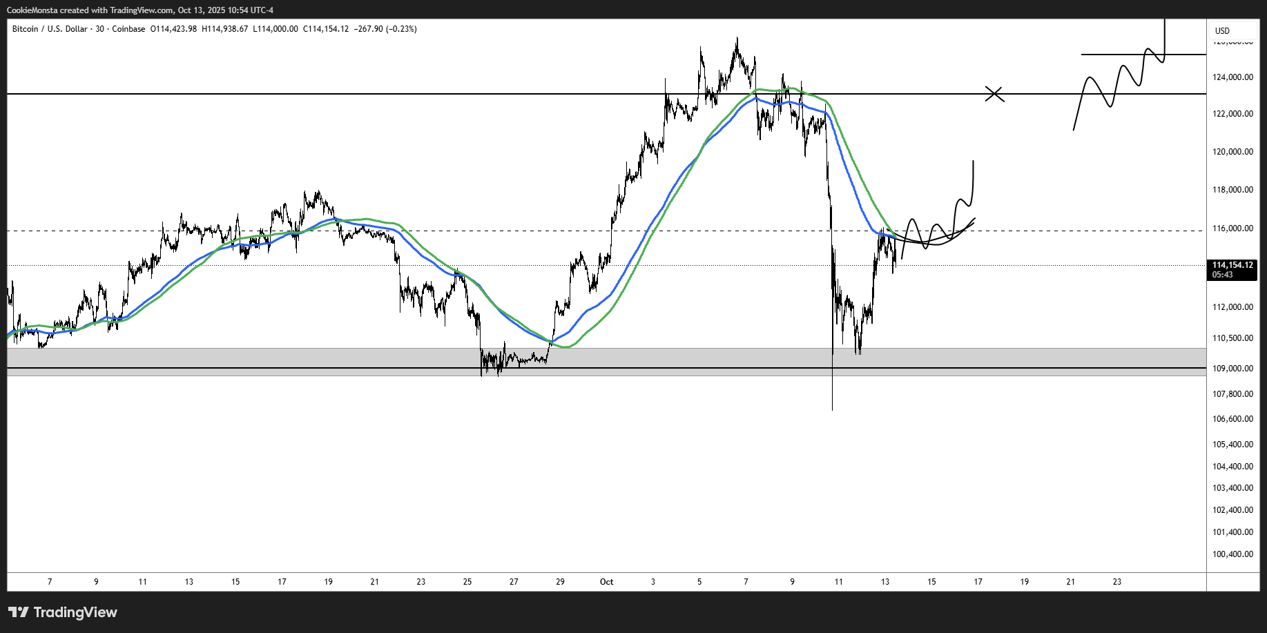 If we hold above this, bulls are in control and 118.5k is the next target based on monthly VWAPs. Break below 114k and I think 112k comes fast, 109k more likely.