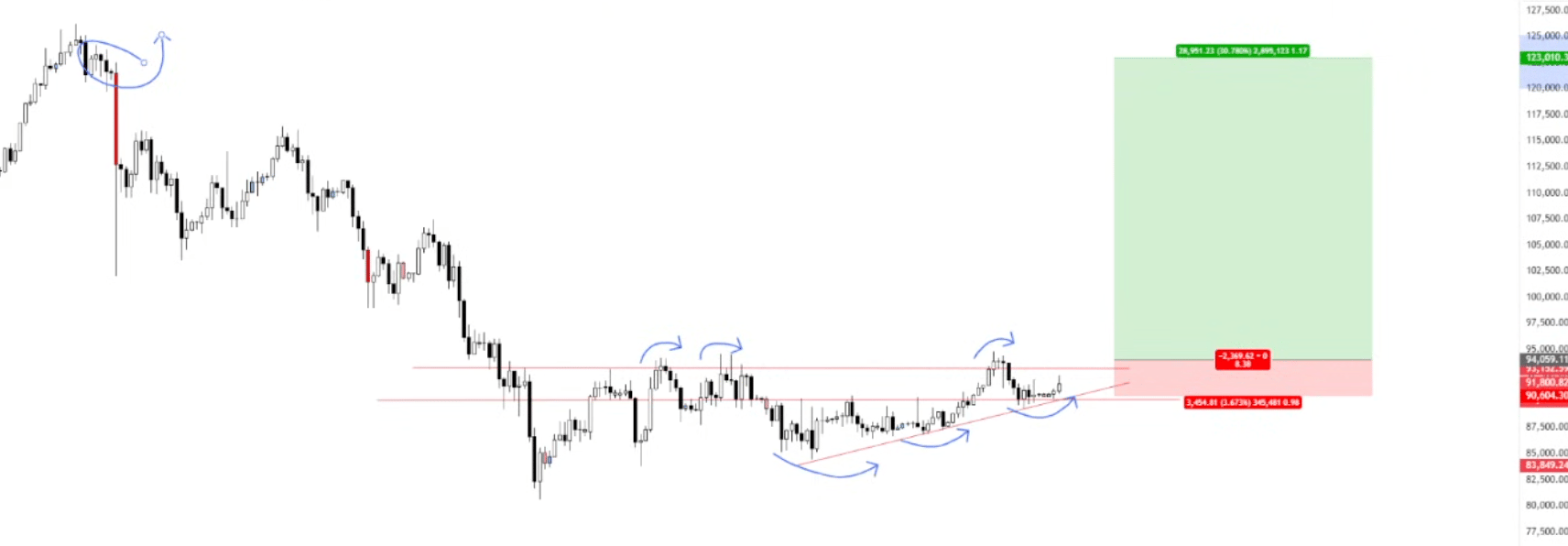 I'm leaning bullish for a push over 94k to potentially 100k