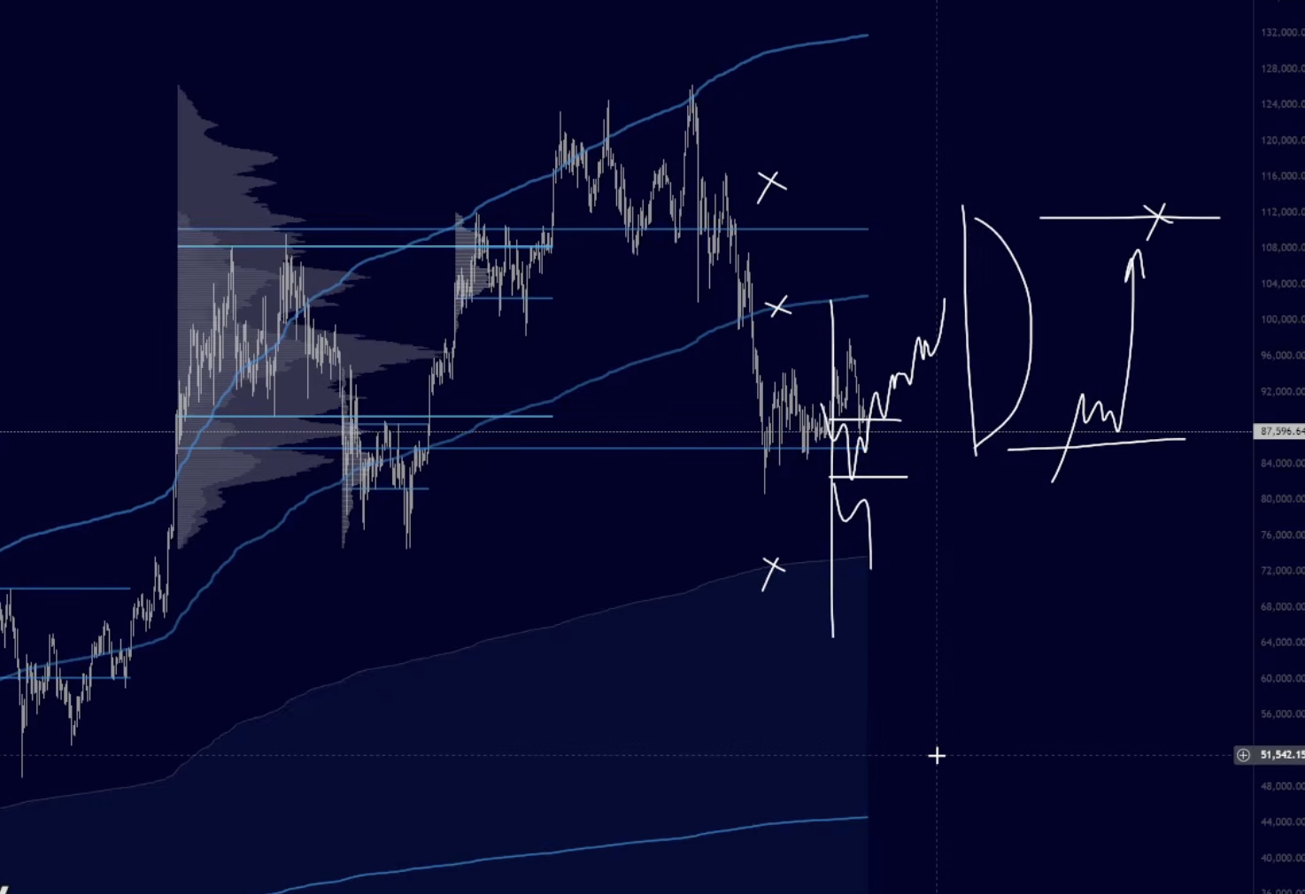 TLDR; Looking for a break of the 4-hour trend, and rotation to 90k-93k.