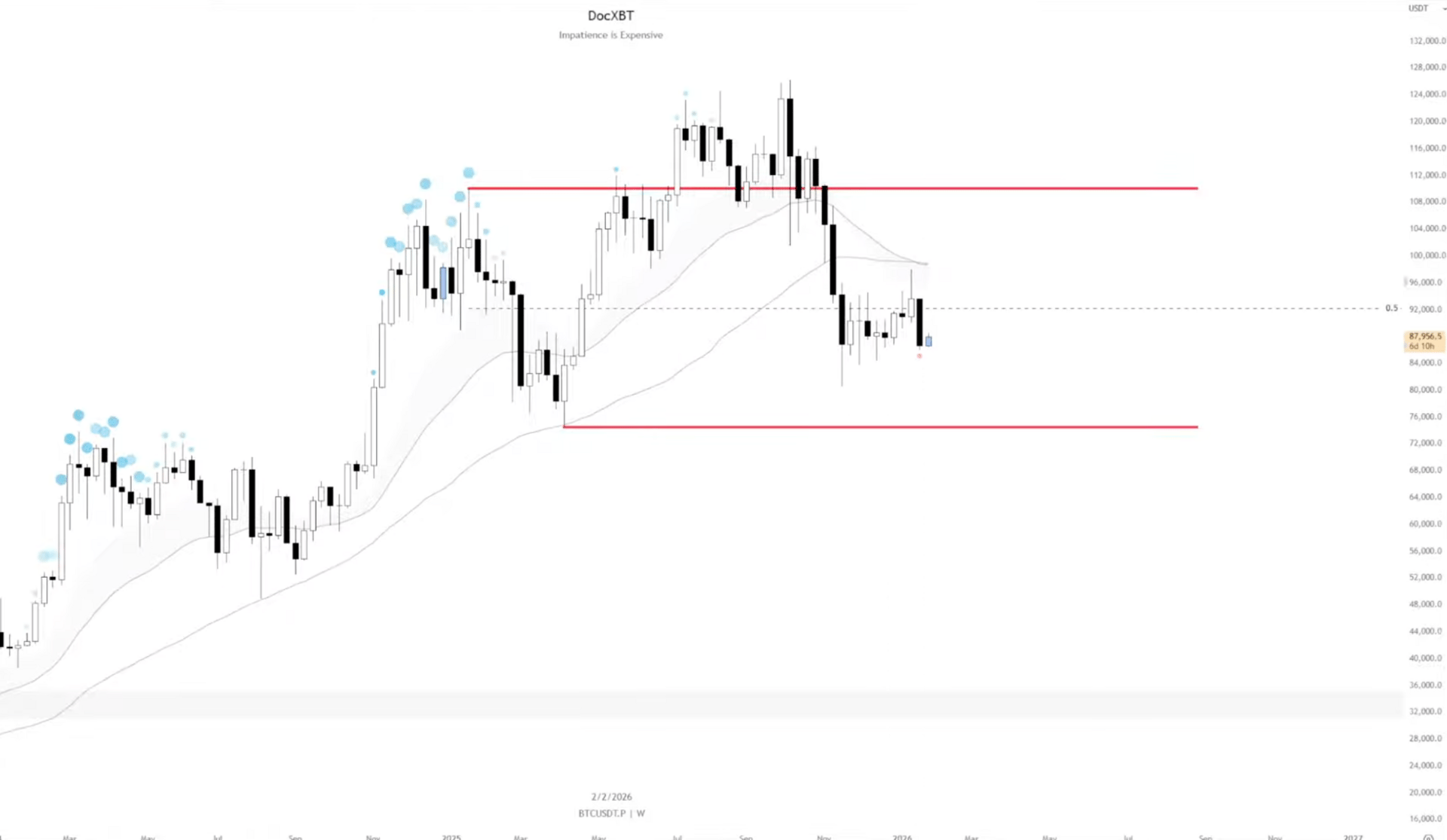 On the medium timeframe we're trading inside this 92k and 85k range.