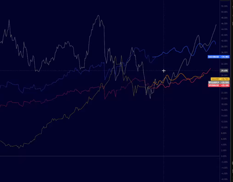 BTC has underperformed equities and gold since the April tariff lows, with a lot that underperformance happening since the 10/10 nuke.