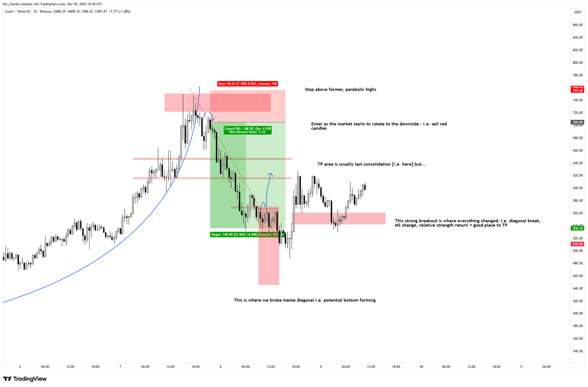 I got in as the parabola broke, set stop above highs, watched for long triggers to get out (click image to see my thoughts on the chart).