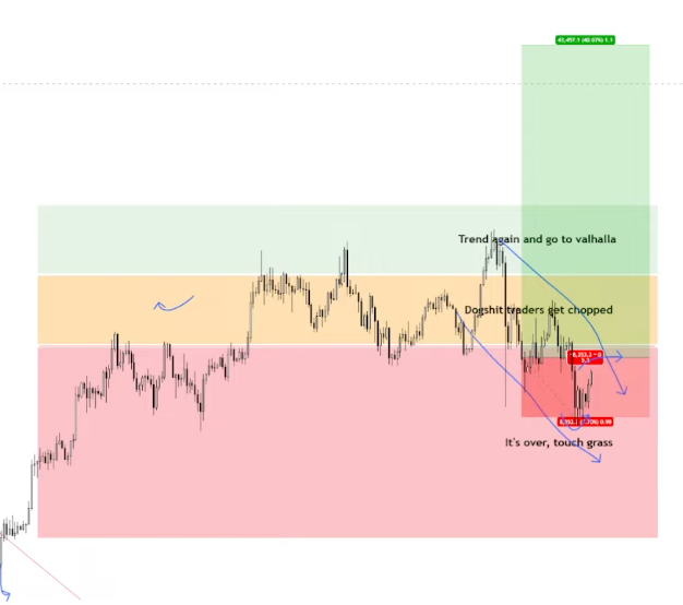 Boomers like me who have been around a while know that BTC commonly puts pressure on people by chopping them up for longer then they can handle, they quit, then it puts in a god candle.
