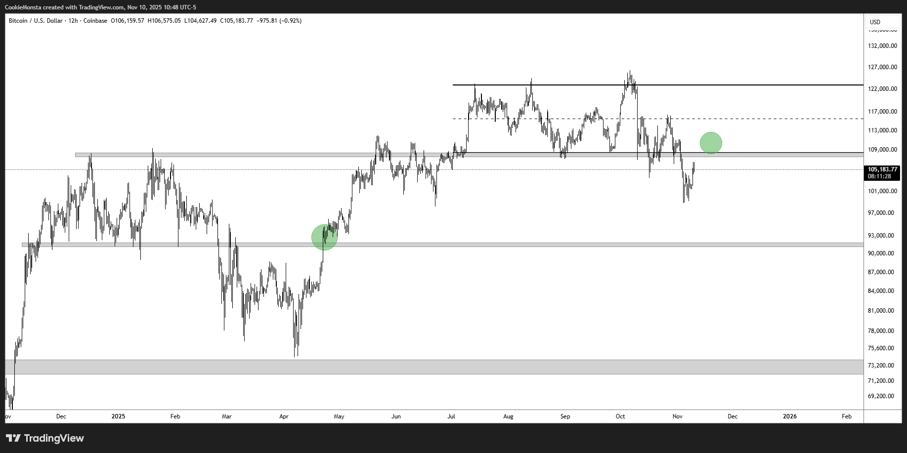 I want to see a deviation back inside the previous 3-month range around $110k to begin scaling into the assumption that the macro bottom is in and momentum favors uptrends across all timeframes once again.