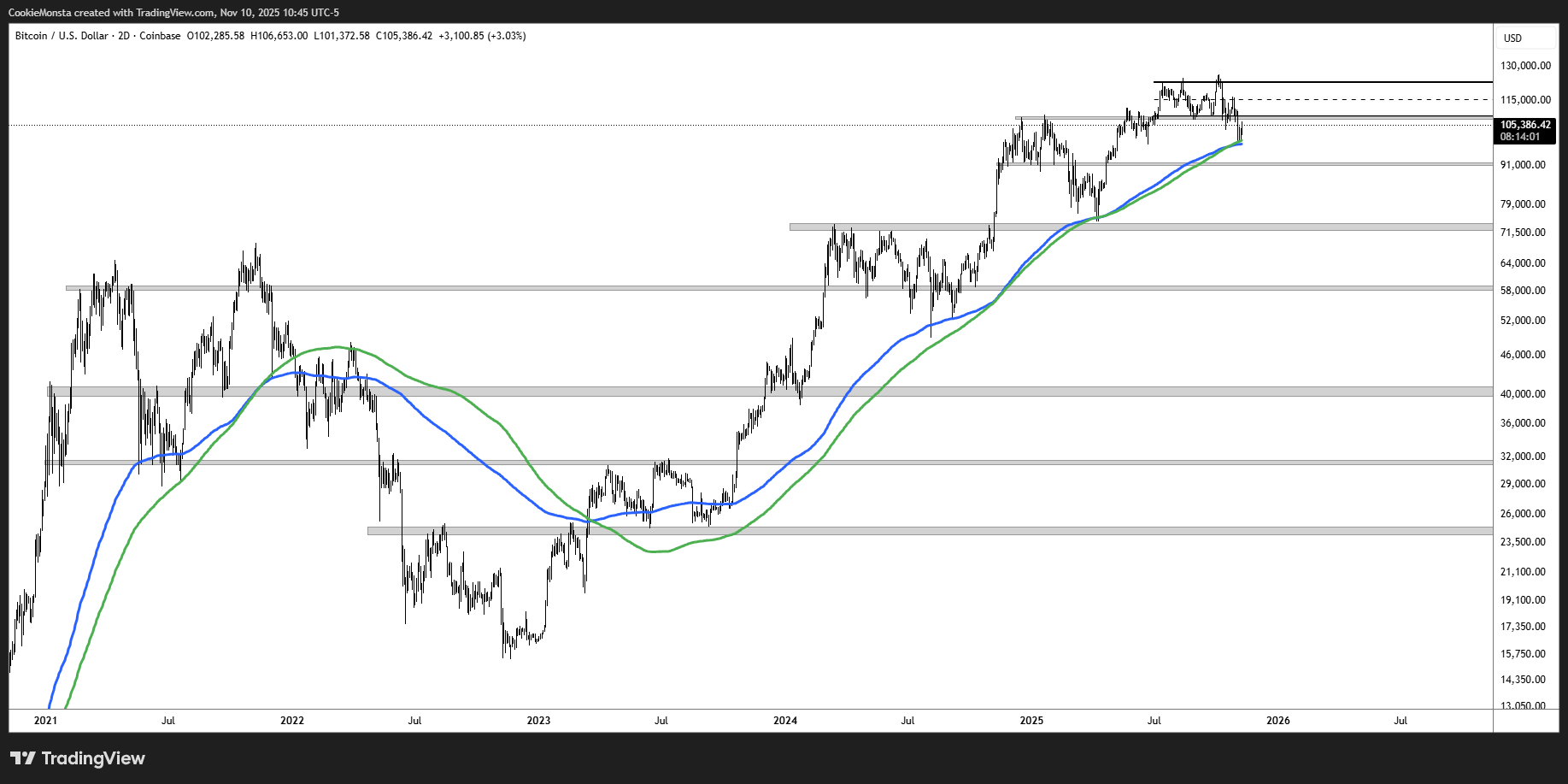 I think we deviate below to shake people out, but it doesn't mean that holding 100k can't happen. Maybe BTC is tradfi enough now that CT consensus doesn’t matter as much.