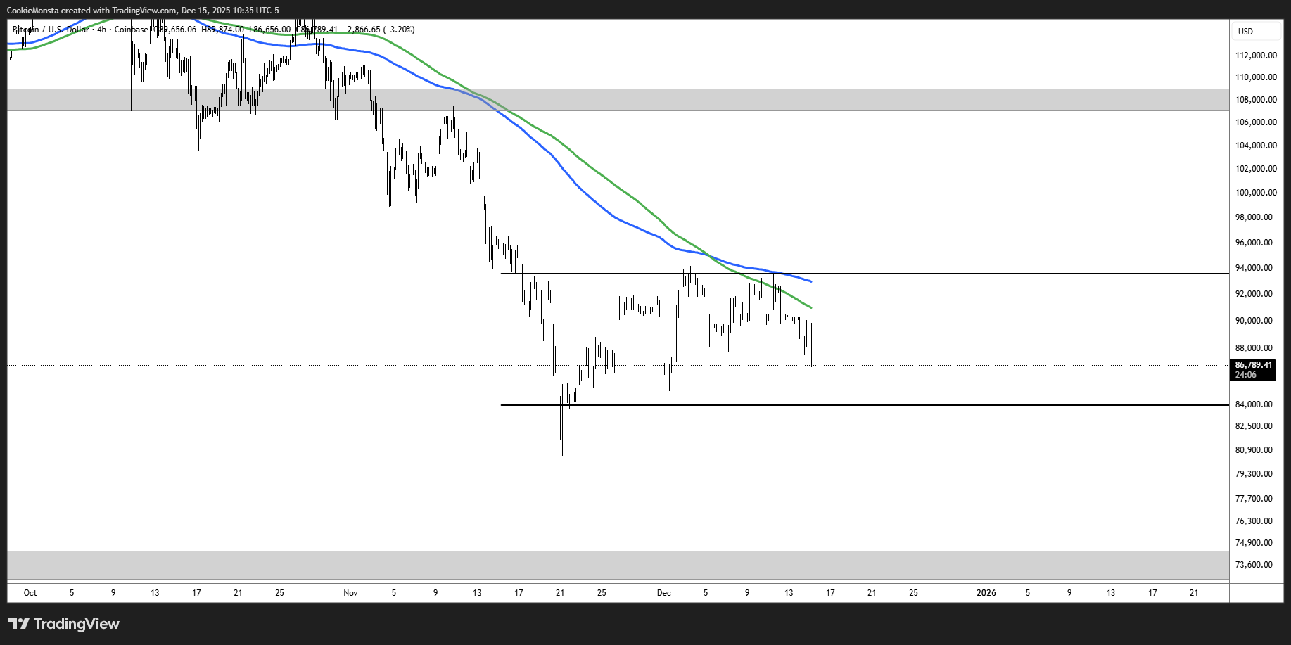 I’m looking for another selloff toward 84-85k then a potential bounce toward 92k resistance.