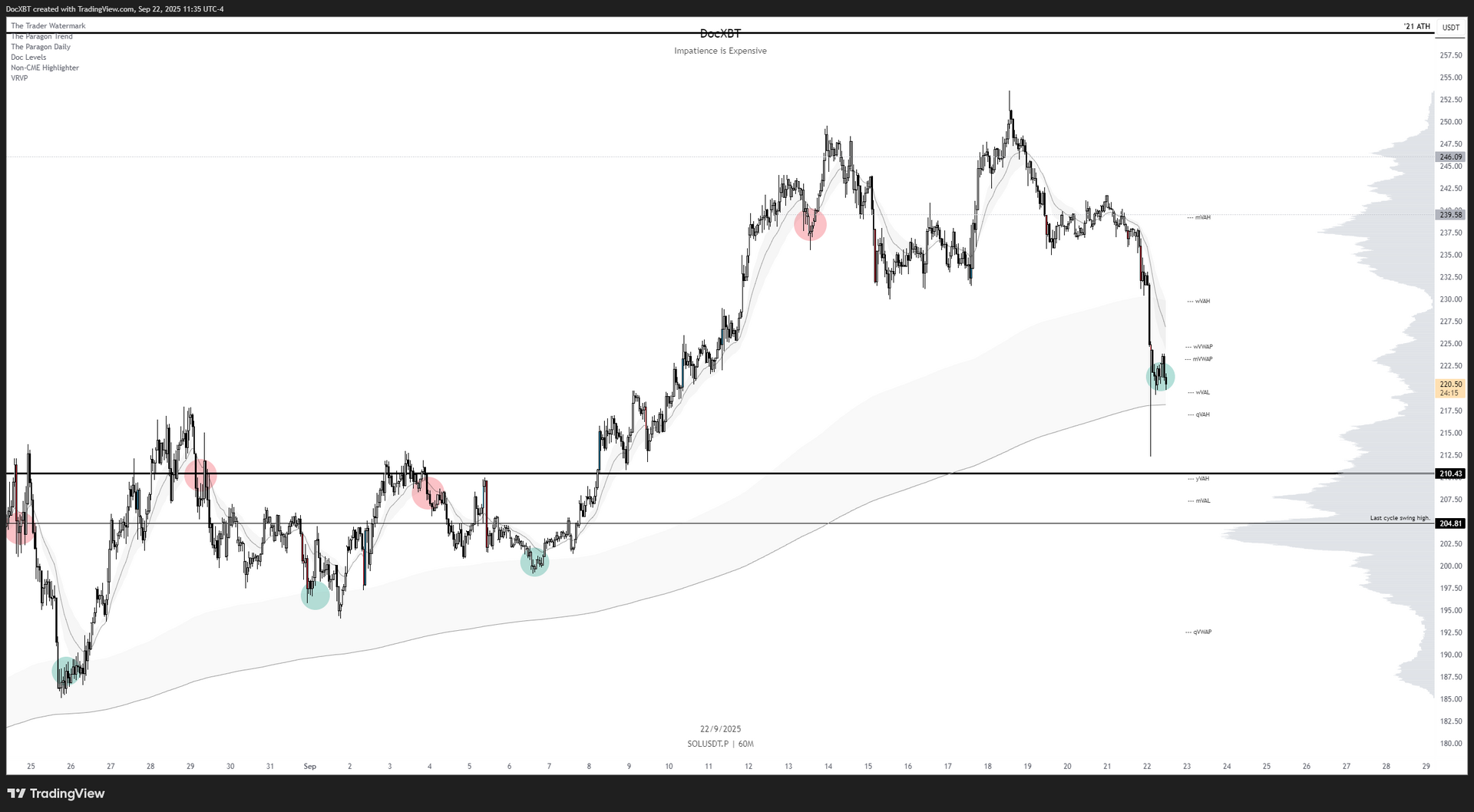 SOL continues trade cleanly — lose the H1 trend, then wait it out for the Daily trend (H4 100/200 EMA).