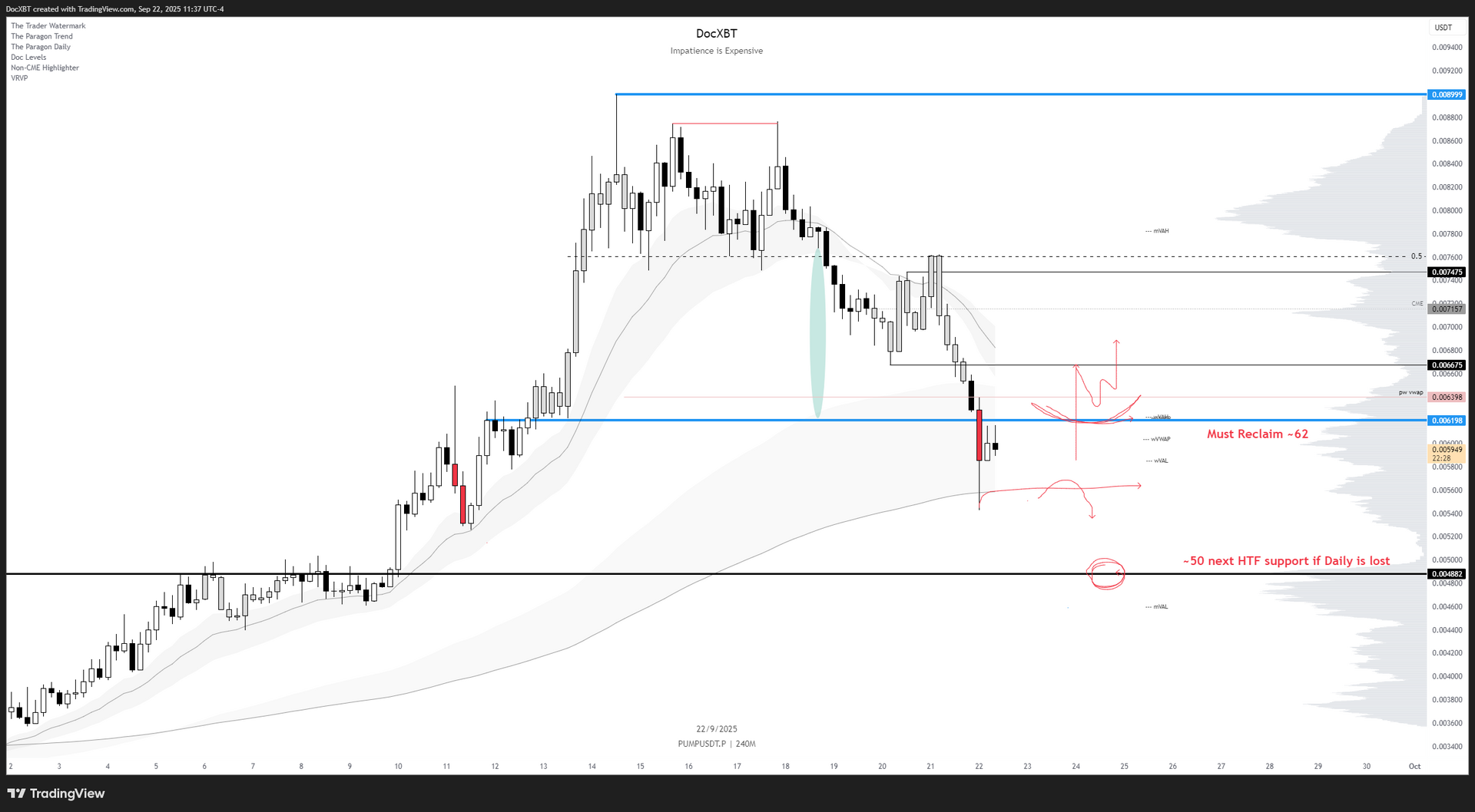 Now I’m looking for a reclaim of 0.0062, which is both a MTF level (marked above) and the mVWAP (below).